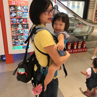 2. 後揹重心不同。之前後揹會想稍微前傾彎腰,有吊帶後竟然可以站直比較舒服了,我想是寶寶的腿在腰際感受不同吧!